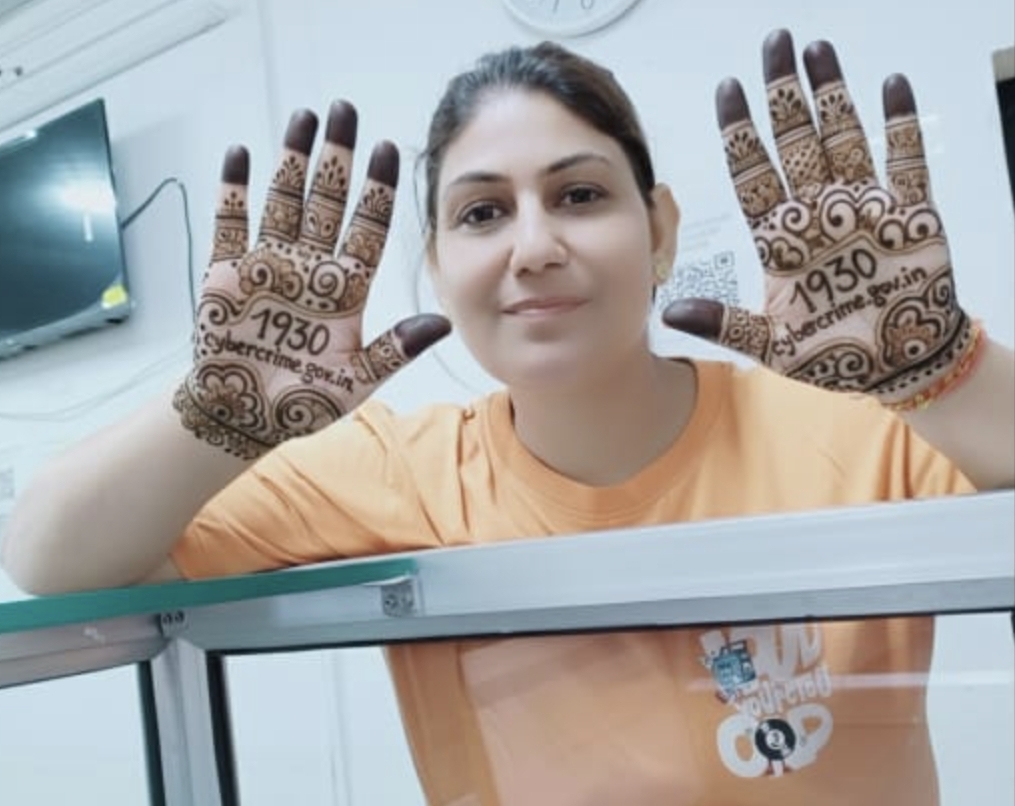 कुमाऊँ क्षेत्र से एक प्रेरणादायक पहल सामने आई है। साइबर क्राइम पुलिस स्टेशन की उप निरीक्षक वंदना चौधरी ने अपनी करवा चौथ की मेहंदी में “1930” और cybercrime.gov.in लिखवाकर लोगों को साइबर सुरक्षा के प्रति जागरूक करने का अनोखा संदेश दिया।