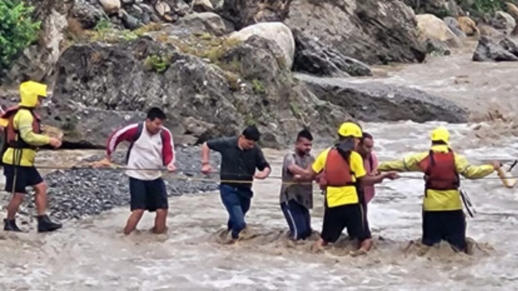 वहीं दूसरी ओर गुच्चूपानी में बड़ा हादसा होते-होते टल गया। यहां नहाने गए सात पर्यटक अचानक बढ़े जलस्तर और तेज बहाव के कारण नदी के बीच बने एक टापू पर फंस गए। सूचना मिलते ही SDRF टीम मौके पर पहुंची और रेस्क्यू ऑपरेशन शुरू किया। तेज बहाव के बीच घबराए पर्यटकों को सुरक्षित बाहर निकाल लिया गया।